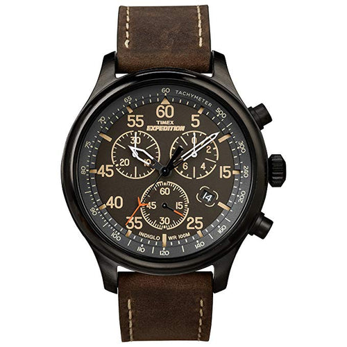 Timex Men’s T49905 Expedition Rugged Field Chronograph Black/Brown Leather Strap Watch
